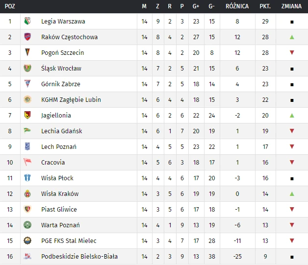 Rywalizacja rozpoczęła się 23 lipca 2021 a zakończy 21 maja 2022 roku. Der aktuelle Spieltag und die Tabelle der polnischen Ekstraklasa 20212022. Spieltag Ergebnisse Spiele und Termine zum Spieltag Alle Tabellen Live-Ticker Statistiken News - kicker.