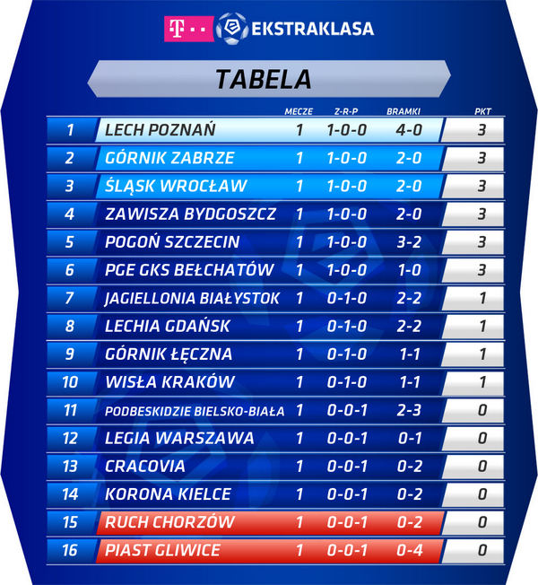 Jak Wyglada Tabela Lotto Ekstraklasy Po Pierwszej Kolejce Spotkan Pilka Nozna Sport Pl